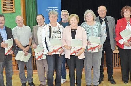 50 Jahre: Helmut Bauer, Karola Hirschboeck, Herbert Prasser (alle Ludwigsstadt), Horst Ebert, Elisabeth Forster, Ellen Heinz, Dietmar Kahl, Adelheid Schildbach (alle Tettau), Günter Daum, Franziska Foertsch, Edith Hertel (alle Reichenbach), Reinhard Horn (Teuschnitz), Werner Lauterbach, Nicolino Ragazzo, Christa Weiner (alle Kronach), Charlotte Loeffler, Zensi Loefflere, Albert Vetterdietz (alle Steinbach), Richard Rauh (Steinwiesen), Doris Scharlach (Föritz).