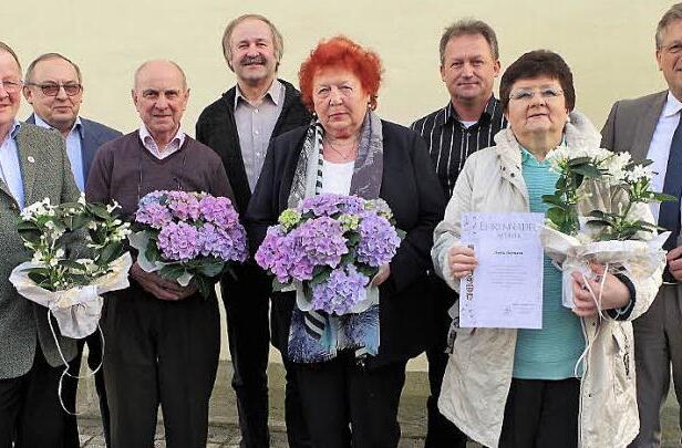 Einer der Höhepunkte der Hauptversammlung war die Ehrung langjähriger Mitglieder. Ausgezeichnet wurden für 25-jährige Zugehörigkeit Anita Daum, Reinhold Oßmann, Wolfgang Schwalb und Leonhard Schneider sowie für 40-jährige Treue Elfriede Stey und Gustav Urban. Vorstandsmitglied Thomas Morand dankte - unter anderem standen Verschönerungsmaßnahmen sowie Mitgliedsbeiträge für Kinder zur Diskussion - allen Vereinsidealisten für ihr Engagement. Mit einem informativen Filmbeitrag von Hans-Josef Detsch über die Landesgartenschau in Bayreuth endete die Versammlung.