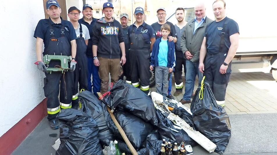 Die Bilanz waren nach gut zwei Stunden sackweise Papier- und Plastikreste, ja selbst eine Nähmaschine wurde bei dem Frühjahrsputz der anderen Art entdeckt. Hinzu kamen jede Menge Flaschen. Entlang des Radweges an der Bundesstraße 303 waren es vor allem Kaffeebecher und Zigarettenschachteln, die von den Autofahrern einfach aus dem Fenster geworfen wurden. Den Kopf schüttelten die Sammler aber darüber, dass auch Hundekotbeutel keine Seltenheit waren. Selbst Betonbrocken und Holzlatten lagen herum. Bürgermeister Ralf Holzmann bedankte sich bei den fleißigen Helfern und spendierte ihnen im Feuerwehr-Gerätehaus eine Brotzeit. kpw