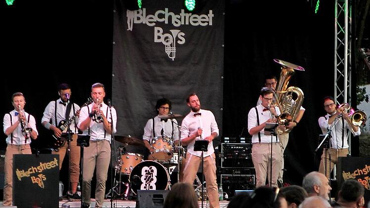 Mit einem Open-Air-Konzert auf der Mainhalbinsel eröffnete die Fußballabteilung der SG Eltmann ihre Feierlichkeiten zum 100-jährigen Bestehen. Bei hochsommerlichen Temperaturen war dies ein gelungener Auftakt, zu dem die "Blechstreet-Boys" beitrugen (im Bild). Sie sorgten für Stimmung. Am kommenden Wochenende geht es dann weiter, wobei am Sonntag, 7. Juli, um 10 Uhr ein Weißwurstfrühstück mit Ehemaligentreffen stattfindet. Am gesamten Wochenende gibt es dann Fußball: mit einem Kleinfeldturnier der U11 am Samstag, 6. Juli, ab 9 Uhr sowie bei zahlreichen Einlagespielen der U9 und U13. Sportliche Höhepunkte sind die beiden höherklassigen Einlagespiele: Die Jubiläumsmannschaft SG Eltmann tritt gegen den Bayernligisten FC Sand am Samstag um 17 Uhr an und der FC Eintracht Bamberg trifft auf den Würzburger FV am Sonntag, 7. Juli, um 16 Uhr. Bei allen Fußballspielen ist der Eintritt frei. Text und Foto: Günther Geiling