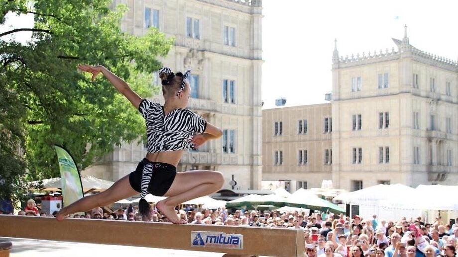 Eine, die sogar ein kleines Interview geben darf, ist Mara Dietz vom TV Ketschendorf. Moderatorin Julia Bach möchte wissen, was denn das besonders Schöne am Turnen sei. "Das ist ein bisschen wie fliegen", erzählt das Mädchen, das im Bundeskader turnt und ein Sportinternat besucht. Seit sie vier Jahre alt ist, turnt sie in Ketschendorf.