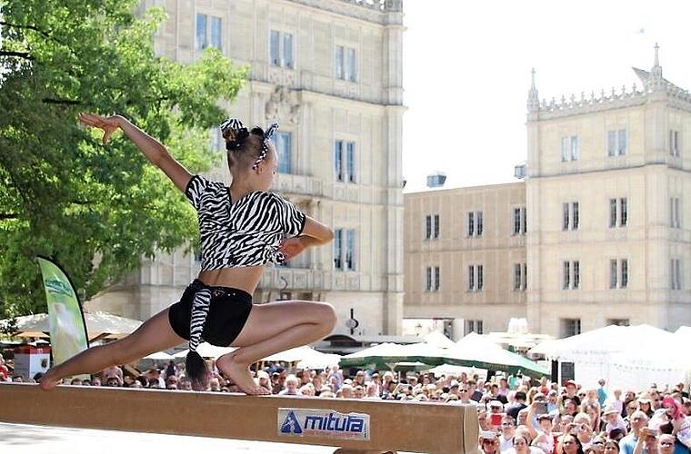 Auf der Musikbühne setzt die Band Funkkartell am Freitag auf ausdauernde Gute-Laune-Beschallung mit effektvollen Gitarren-Soli, lupenreinem Trompeten-Glanz und ausdrucksvollem Gesang. Am Samstag heizen die Chicolores richtig ein, machen Party zum Mittanzen. Im Programmheft versprechen sie, dass keine Hüfte dem Zauber dieser Band widerstehen kann. Und so ist's. Das Publikum wippt begeistert mit. Auf der Showbühne daneben demonstrieren vornehmlich Talente aus der Region ihr Können vor großem Publikum.