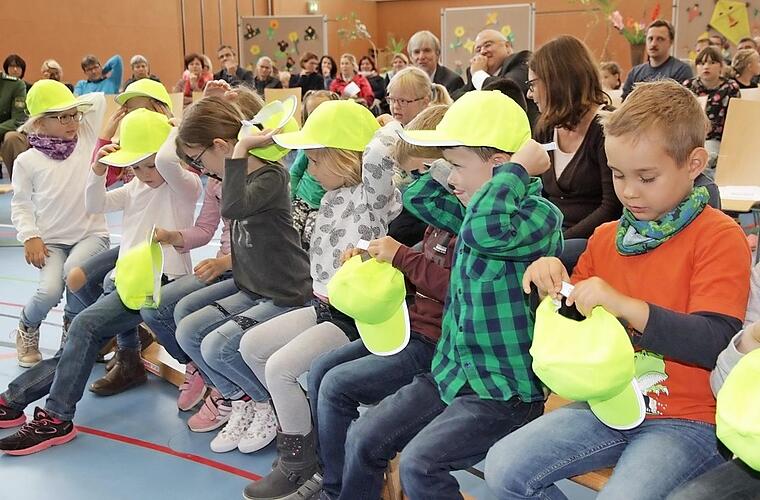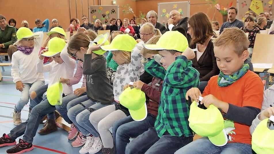 "Völlige Sicherheit wird es nicht geben, doch durch unsere gemeinsamen Anstrengungen schaffen wir es, die Verkehrswelt für unsere Kinder sicherer zu machen", so Schulamtsdirektor Ulrich Löhr. Am Ende des offiziellen Teils der Veranstaltung, der von verschiedenen Klassen der Grund- und Mittelschule Hallerndorf musikalisch umrahmt wurde, erhielten die Erstklässler von der Sparkasse Forchheim noch gelbe Mützen mit reflektierenden Streifen. Das soll im Straßenverkehr ihre Sichtbarkeit erhöhen.