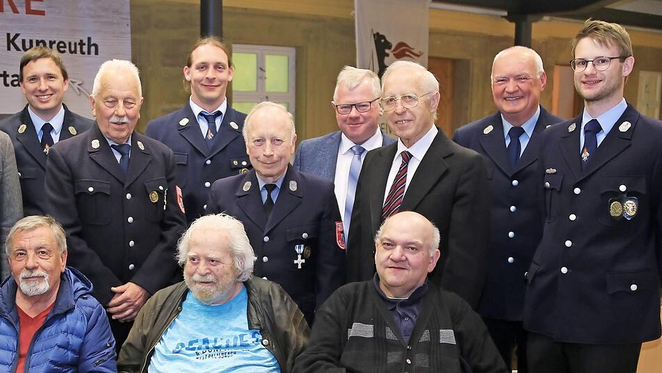 Kreisbrandrat Oliver Flake und Landrat Hermann Ulm (CSU) nahmen im Auftrag von Innenminister Joachim Herrmann (CSU) die Ehrungen aktiver Mitglieder vor. Dabei betonte Ulm, dass Kunreuth mit seinem Jubiläum zu den ältesten Wehren im Landkreis Forchheim zähle.