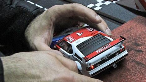 Bereits in der ersten Runde haut es das Auto aus der Spur, Fluchen beim Fahrer, ein Zuschauer hilft und setzt den Wagen wieder ein. Weiter geht es, unvermittelt, aber mit ein wenig mehr Fingerspitzengefühl, um nicht in der nächsten Kurve wieder den Abflug zu machen. Das ist Carrera- Feeling pur.