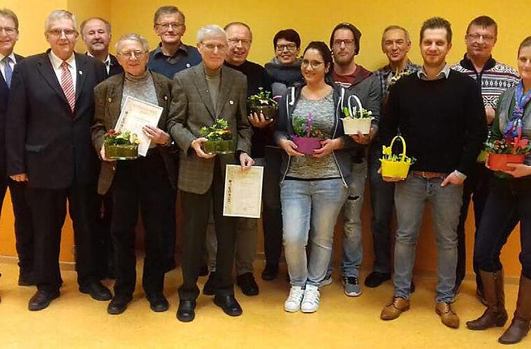 Verdiente Mitglieder konnte Siegmeth mit dem Kreisvorsitzenden Fritz Pohl für langjährige Treue ehren. Als verdiente langjährige Mitglieder geehrt wurden Jürgen Schlee (15 Jahre), Bernd Büttner, Harald Fischer, Manfred Hahn und Klaus Rasokat (alle 25 Jahre) sowie Alfons Ammon, Jürgen Förtsch, Manfred Ge uther und Hanns Heiner Hampel (alle 40 Jahre).