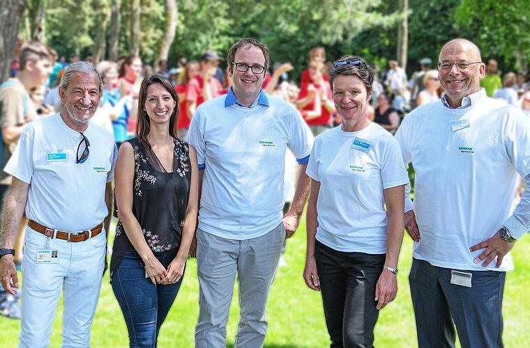 "Hier war für jedes Kind etwas dabei", sagte Manuela Knaak, eine der jungen Organisatorinnen des Siemens-Nachwuchskreises Erlangen-Mitte. Unterstützt wurde das Organisationsteam bei den Aktionen von Auszubildenden und Flüchtlingspraktikanten der Siemens AG sowie vom Arbeitskreis Gesundheit des Standorts Erlangen-Mitte. Erlangens Oberbürgermeister Florian Janik (SPD) eröffnete das Sport- und Spielefest gemeinsam mit Claus-Jürgen Wais, Personalleiter Siemens Erlangen, und der Siemens-Betriebsratsvorsitzenden Erlangen-Mitte, Sigrid Heitkamp.