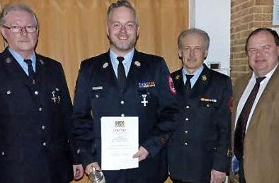 Das Staatliche Ehrenzeichen in Silber für 25 Jahre aktiven Feuerwehrdienst und die goldene Ehrenamtskarte des Landkreises Kulmbach durfte am Freitagabend bei der Jahreshauptversammlung der Feuerwehr Walberngrün im SG-Sportheim der Kreisbrandmeister und Erste Kommandant der Löschgruppe, Yves Wächter, aus den Händen von Grafengehaigs Bürgermeister Werner Burger und Kreisbrandinspektor Horst Tempel entgegennehmen.