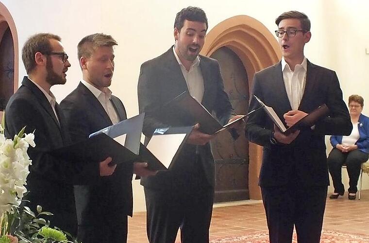 Schon zum elften Mal findet der Münchauracher Klosterfrühling statt. Den Auftakt bei der diesjährigen Reihe machte das Dresdner Vokalensemble "Echo" mit seinem Programm "Wonderful world". Bürgermeister Klaus Schuhmann (ÜWB) begrüßte die vier Sänger und versprach einen tollen musikalischen Abend. Ihre eigene Vorstellung klang sehr überzeugt: "Wir sind vier smarte, junge, hübsche Sänger!" Das Dresdner A-cappella-Ensemble "Echo" besteht aus den vier jungen Sängern Moritz Bamberg (Tenor), Jan Lang (Countertenor), Bastian Bartsch (Bariton) und Gustav Augart (Bass), alles ehemalige Mitglieder des weltberühmten Dresdner Kreuzchores.