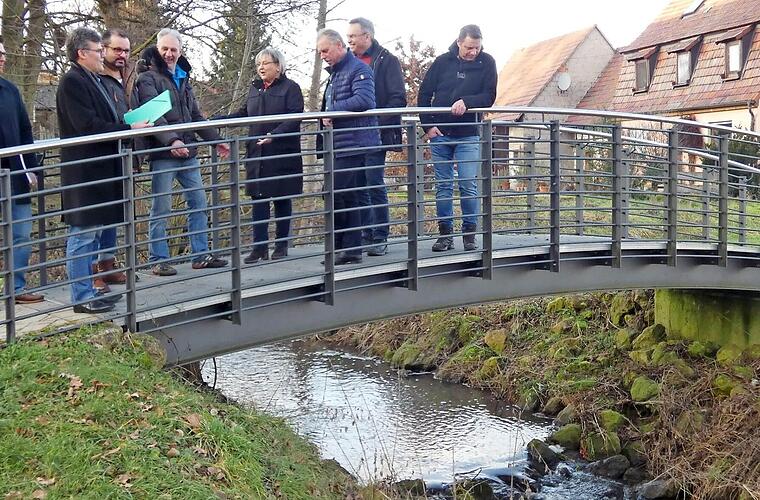 Seit geraumer Zeit ist die bestehende Holzbrücke aus Sicherheitsgründen abgesperrt und nicht mehr begehbar. Mehrere Varianten und Angebote für die neue Brücke wurden bereits den Gremien vorgestellt. Die Verwaltung geht davon aus, dass für die gewünschte Ausführung in Metall durch eine Fachfirma Kosten von 55 000 bis 65 000 Euro entstehen Dies wurde seiner Zeit schon sowohl vom Bau- und Umweltausschuss als auch vom Gemeinderat für sehr teuer und kostenintensiv angesehen. Durch die letztjährige, zur Verstärkung des Bauhofes erfolgte Neueinstellung eines gelernten Metall- und Stahlbauers, besteht jetzt die Möglichkeit, solch eine Brücke selbst zu fertigen und zu errichten. Dies würde sicherlich eine immense Kostenreduzierung mit sich bringen, erklärte Bürgermeister Thomas Sechser. Der neue Bauhofmitarbeiter war bereits in seiner letzten Stellung bei einer Metallbaufirma an der Ausführung der besichtigten Brücke in Lauter beteiligt und hat somit Erfahrung.