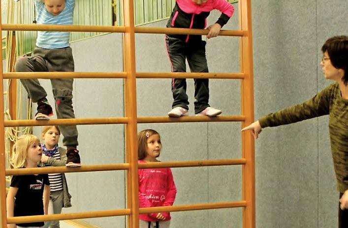 werfen und erst recht zu fangen. Dabei sind Fangen und Werfen durchaus grundlegende motorische Fähigkeiten, die dazu noch die Koordination von Hand und Auge unterstützen. Auch mit einem Stab einen Gymnastikball im Slalom durch Kegel zu führen, verlangt eine besondere Geschicklichkeit. Das Klettern über eine ausgeklappte Sprossenwand bedeutet für manches Kind sogar auch die Überwindung von Angst.