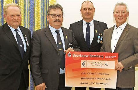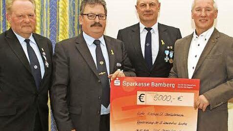 Es sind beeindruckende Zahlen, die Kassierer Georg Seelmann den Mitgliedern des Soldaten- und Kameradschaftsvereins im Gemeinschaftshaus vorlegt. "Von 1987 bis 2017, also in knapp 30 Jahren, haben wir rund 25 000 Euro an gemeinnützige Zwecke gespendet", sagt er. Viele der Gelder gingen zugunsten der Kirche. So auch in diesem Jahr: Die Vorsitzenden übergeben bei ihrer Hauptversammlung einen symbolischen Scheck über 5000 Euro für die Renovierung der Pfarrkirche "Sankt Laurentius".