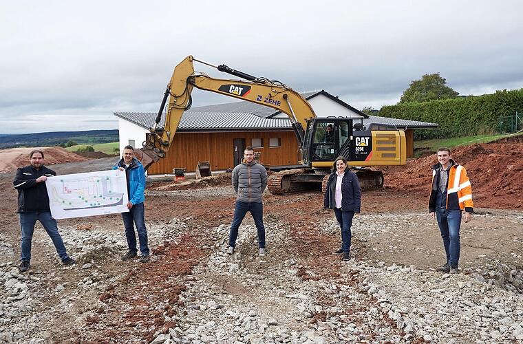 Der Bagger hat schon Einiges am Außengelände des "Haus für Alle" in Langenleiten in Bewegung gesetzt. Wo die künftigen Parkplätze entstehen und die neue Zufahrt, ist schon gut zu erkennen. Doch so ganz ohne "Spatenstich" wollten Michael Manger vom Amt für Ländliche Entwicklung, Bürgermeisterin Sonja Reubelt und Vertreter der "Leonie und Helmut Schmitt Stiftung" das wichtige Bauprojekt nicht beginnen lassen. Manger und Julian Metz vom Planungsbüro Glanz stellten den Plan für die Außenanlage vor. Eine eigene Zufahrt werde vom Standort der ehemaligen und mittlerweile abgerissenen Postgarage aus erstellt. Diese Zufahrt diene auch der Ver- und Entsorgung des Gebäudes. 20 Parkplätze sind geplant, davon einige behindertengerecht.