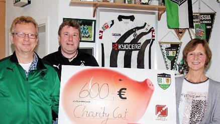 Der Aurachtaler Stephan Weiland, Puma-Mitarbeiter und Gründungsmitglied sowie Kassier von "Borussen Mythos" ist auch Mitglied bei Charity Cat und hatte nicht nur die Spende mitgebracht, sondern auch den Verwendungszweck. So spendet Charity Cat jährlich bereits über 4200 Euro an den Sozialtreff Erlangen, und der Erlös aus einer Versteigerung von Fan-Artikeln von Borussia Mönchengladbach in Höhe von 600 Euro geht ebenfalls an die Erlanger Organisation.