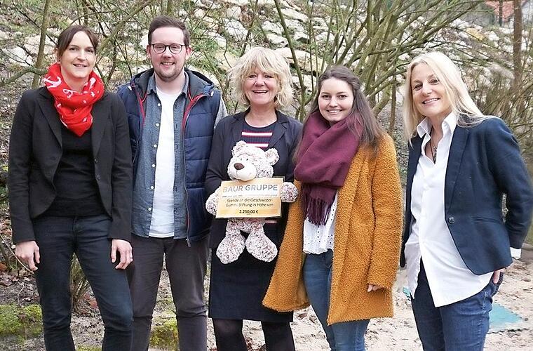 Der Betrag kommt den kleinen Kindern in den Wohngruppen zugute, insbesondere für die Anschaffung neuer Kleinkindfahrzeuge wie Laufräder oder Bobbycars sowie für Sandspielzeug. "Jetzt, wenn der Frühling beginnt, geht es rauswärts", sagte Edeltraud Dahlhoff: "Für viele Kinder werden neue Fahrzeuge benötigt." Dahlhoff leitet den Fachbereich Familie und Erziehung der Geschwister-Gummi- Stiftung und erhielt den Scheck von Jessica Nickel, Lena Krauß und Stefan Gagel aus dem Team der Unternehmenskommunikation der Baur Gruppe. "Solche Spielzeuge werden rein über Spenden finanziert und werden dringend benötigt," wird diesen erklärt. red