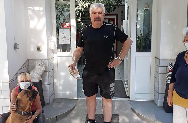 Der corona-bedingte Ausfall des Annafestes füllt die Tierheimkasse auf: Durch den Ausverkauf von "Freddy's Bar" (Kühlschränke, Einrichtung, Deko etc.) kamen nach Abzug der Pacht und Brotzeiten für die Arbeiter 470 Euro zusammen. Freddy Winkler rundete die Summe auf und übergab 500 Euro an die Tierheim-Vorsitzende Marianne Wende. Alle im Tierheim freuen sich über den Geldregen in Corona-Zeiten. red
