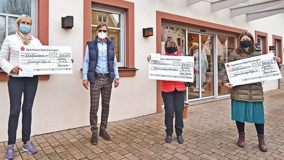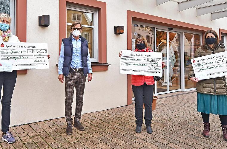 Von der Adler Apotheke Euerdorf kamen 1500 Euro. Je 500 davon erhielten die Palliativstation Schweinfurt, die Tafel Bad Kissingen und die Tafel Hammelburg. Die Rathaus Apotheke Euerbach - die erstmalig an der Aktion teilnahm - unterstützte mit 1200 Euro. 600 Euro gehen an die Palliativstation Schweinfurt und 600 an die Schweinfurter Tafel. Dankbar entgegen nahmen die Spende Ursula Pöpperl für die Palliativstation Schweinfurt, Ernst Gehling für die Tafel Schweinfurt, Dagmar Ziegler für die Tafel Bad Kissingen und Luise Smolik für die Tafel Hammelburg. So erreiche man gemeinsam, dass bedürftige und kranke Menschen ein schönes Weihnachten feiern können, freuen sich Familie Wernke und Team, die allen ein gutes 2021 wünschten. red