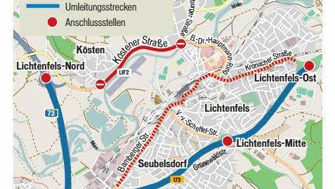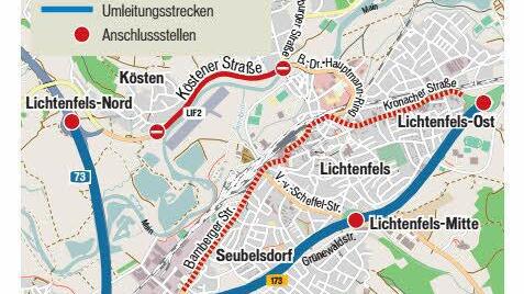 Stadtbaumeister Graßinger erklärt, die Stadtverwaltung habe alle Hände voll zu tun gehabt, die betroffenen Firmen direkt und zeitnah zu informieren, die Busfahrpläne abzuändern und die Baustelle organisatorisch vorzubereiten. Weil die Kreisstraße LIF 2 direkt an die A 73 angebunden ist, sei eine Sperrung nur in Abstimmung mit der Autobahndirektion möglich - und die setze dafür enge Grenzen. Eine Sperrung während der Ferienzeit werde jedenfalls nicht toleriert, weil die Kreisstraße notfalls als Umleitung genutzt werden müsse, wenn die Autobahn durch einen Unfall oder Stau unpassierbar werde.
