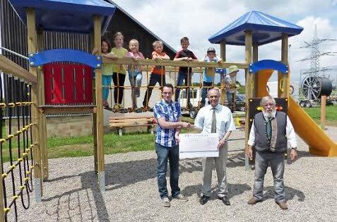 Bürgermeister Franz Uome ließ es sich nicht nehmen, das neu bestückte Spielareal für die Kinder freizugeben. Und die Mädchen und Jungen nahmen die neuen Geräte gleich in Beschlag.
