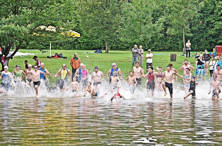 So ging es den meisten Teilnehmern. Für viele Besucher ist der Triathlon ein fester Termin im Kalender, so auch für Alexandra Danz aus Eisfeld. "Wenn man einmal dabei war, kommt man immer wieder", sagte sie. Heuer hatte sie Freunde mit in das Waldbad gebracht; Ulrike Voigt, Sarah Schröder und Marcel Rebel wärmten sich auf, bevor Landrat Michael Busch den Startschuss abgab.