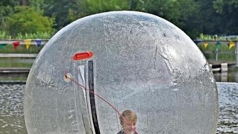 Der Triathlon wurde zum 13. Mal von der HABA-Firmenfamilie, der Stadt Bad Rodach und dem Landkreis Coburg veranstaltet. Wie Corina Trier vom Haba-Organisationsteam erklärte, habe sich das Wochenende im August bewährt. "Seitdem haben wir eine stetig wachsende Zahl an Teilnehmern". Dieser Tag, so Nathalie Dikomey vom Familienbüro am Landratsamt Coburg, solle vor allem für Kinder und Familien ein Erlebnis sein. Deswegen habe man ein abwechslungsreiches Spiel- und Bewegungsprogramm auf die Beine gestellt. Kinder tobten auf der Hüpfburg, testeten ihr Geschick beim Bullriding, probierten Kajakfahren und Wasserballlaufen.