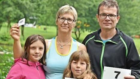 Das Wetter spielte für Angelika Schneider und ihre Familie sowieso keine Rolle. "Ich war Weihnachten zur Kur an der Ostsee und klar wollte ich ins Wasser. Das sehe ich als Kneippbad." Die Coburgerin bildete am Sonntag mit den Töchtern Lina und Sophie, zehn und neun Jahre alt, ein Team. Die Mutter musste 150 Meter schwimmen, Lina trat in die Pedale und Sophie schnürte die Laufschuhe. Papa Robert Schneider stellte sich als Einzelkämpfer dem Wettbewerb und legte alle drei Disziplinen ab. Die Radstrecke führte fünf Kilometer durch ein schattiges Waldgebiet auf befestigten Wegen, die Laufstrecke ging circa 1,5 Kilometer durch die Natur rund um das Waldbad. "Wir machen einfach mit, weil es Spaß macht", sagte Angelika Schneider.