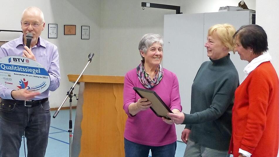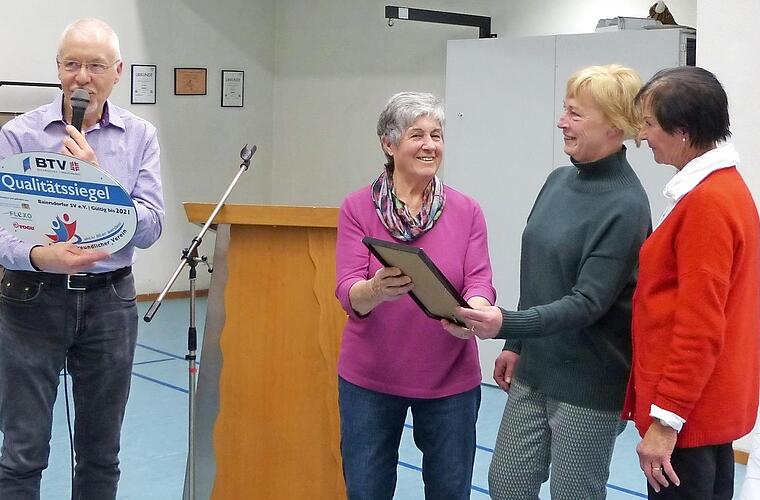 Besonders engagiert ist der Verein im Seniorensport. Die Angebote reichen hier bis zur Stuhlgymnastik. Für diesen Kurs im evangelischen Gemeindehaus gibt es sogar einen Fahrdienst. Michael Wiedenbauer vom Bayerischen Turnverband überreichte den Seniorensportlerinnen Brigid Gruß, Anne Küpers und Ursel Baumgartl die Auszeichnung "seniorenfreundlicher Verein".