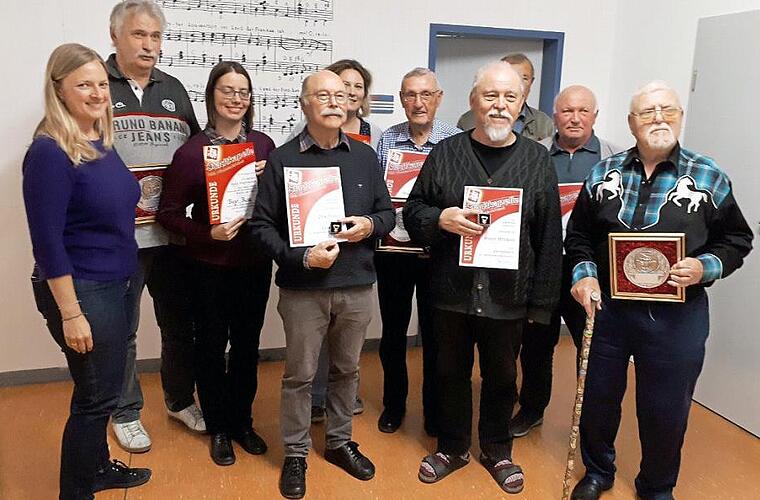 Da in diesem Jahr keine Neuwahlen anstanden, gab es stattdessen einen wahren Ehrungs-marathon. Für zehn Jahre passive Mitgliedschaft wurde Georg Ortegel geehrt. Für 25 Jahre aktive Mitgliedschaft erhielten Kerstin Schlosser und Birgit Bloss eine Auszeichnung. Für 25 Jahre passive Zugehörigkeit erhielt diese Auszeichnung Georg Sacher. Ein halbes Jahrhundert sind nun Manfred Bachmaier, Monika Förtsch, Georg Müller und Walter Volkmer bei der Stadtkapelle. Sie wurden mit einem Ehrenteller ausgezeichnet. Und Walter Volkmer erhielt noch eine weitere Auszeichnung. Gemeinsam mit Karl Köhler, Otto Glatter, Ewald Märkert und Günter Weinkauf wurde er in den Rang eines Ehrenmitgliedes der Stadtkapelle erhoben. Volkmer ist so etwas wie die gute Seele des Vereines. Trotz seines hohen Lebensalters ist er immer noch aktiver Musikant und kümmert sich um die Kantine der Stadtkapelle. Uli Weiß