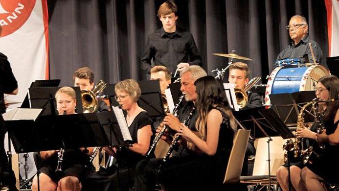 Vor der Bühne fieberten dann schon die Jüngsten ihrem Auftritt entgegen, die Bläserklasse unter ihrem Leiter Bernhard Rippstein. Die elf Mädchen und Buben üben seit eineinhalb Jahren in diesem Projekt. Bei dieser Ausbildung stehe auch der Spaß im Vordergrund, erklärte Rippstein. Mit ihrem "American Petrol" oder der "Pinguin Parade" verdienten sich die Kinder großen Beifall.