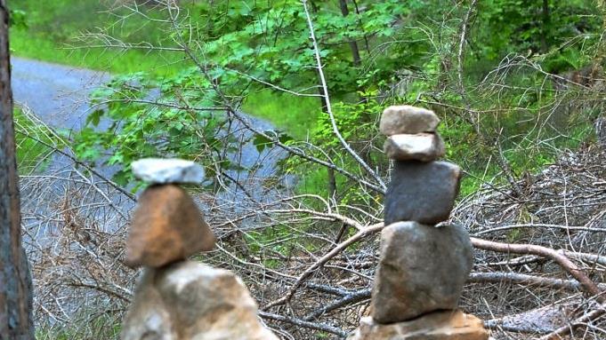 Mal sind es einige wenige Steine, dann wieder ein Mix aus vielen Steinen und Holz, aber immer ziehen sie die Blicke auf sich - Steingebilde, die seit einiger Zeit immer häufiger im Landkreis auftauchen. Am Lauterberg, nahe dem Naturlehrpfad, vor allem aber im Waldstück Lahm zwischen Rohrbach und Neu-Neershof erinnern sie an die Steinmännchen, die aus den Alpen bekannt sind.