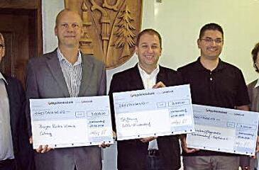 Wiederum konnten die beiden Verwalter und Stiftungsräte der Karl-und-Herta-Schröder-Stiftung, Bürgermeister Wolfgang Bauersachs (BfB) und Scheuerfelds Pfarrer Hartmut Braune-Bezold, die stolze Summe von 9000 Euro an drei Empfänger ausschütten.