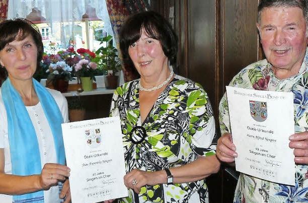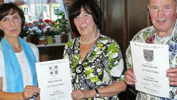 Für 40 Jahre Singen im Chor zeichnete sie Franziska und Alfred Neupert mit der Ehrennadel in Gold des Fränkischen Sängerbunds (FSB) aus.