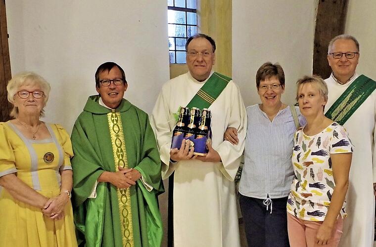 Der Familiengottesdienst, den Pfarrer Hans-Michael Dinkel zusammen mit Diakon Wolfgang Fehn und Diakon Konrad Funk zelebrierte, wurde vom Chor "El Shalom" mit Sven Zimmermann musikalisch umrahmt. An der Orgel spielte Sebastian Rauer. Wie Pfarrer Dinkel ausführte, sei das Pfarrfest aufgrund der Mitwirkung von Jung und Alt ein Festtag für die Gemeinde. "Ihr seid lebendige Bausteine der Kirche", betonte der Geistliche. Wie Diakon Funk ausführte, sei er bisher im Seelsorgebereich "Obermain Jura" tätig gewesen. "Ich bin sehr gerne Diakon, mit all den unterschiedlichen und auch herausfordernden Aufgaben dieses Dienstes." So reifte im vergangenen Jahr sein Wunsch, ganz in den Hauptberuf als Diakon zu wechseln und somit Zeit, Kraft und Engagement verstärkt auf das ausrichten zu können, was ihm besonders am Herzen liegt: auf den Dienst für die Menschen.