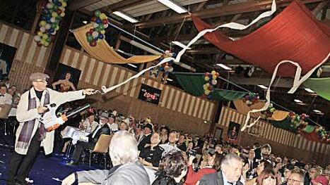 Als die Feuerwehrmänner um Norbert Neugirg mit schrägen Tönen die Halle betraten, war allen klar, dass es sich bei der "Altneihauser Feierwehrkapell'n" um kein Double handelte. Höchstes um einen leicht neben der Spur stehenden Kommandanten. Wer war noch das Juwel am Main? "Du, Lichtenfels, bist es allein! Auf Lichtenfels liegt Gottes Segen, Bad Staffelstein ist nichts dagegen", las Neugirg von einem reichlich zerknüllten Manuskript ab. Da hatte er offenbar das verkehrte aus der Tasche gezogen.