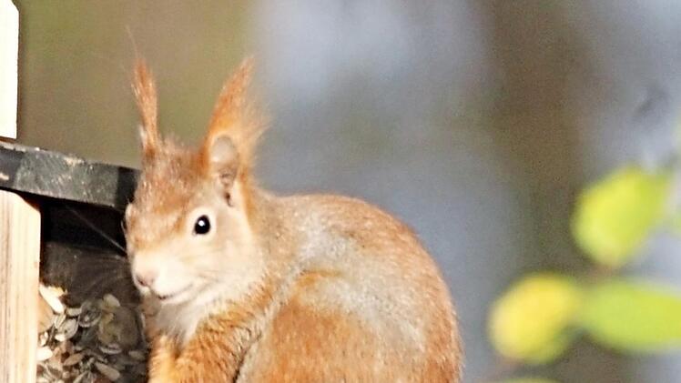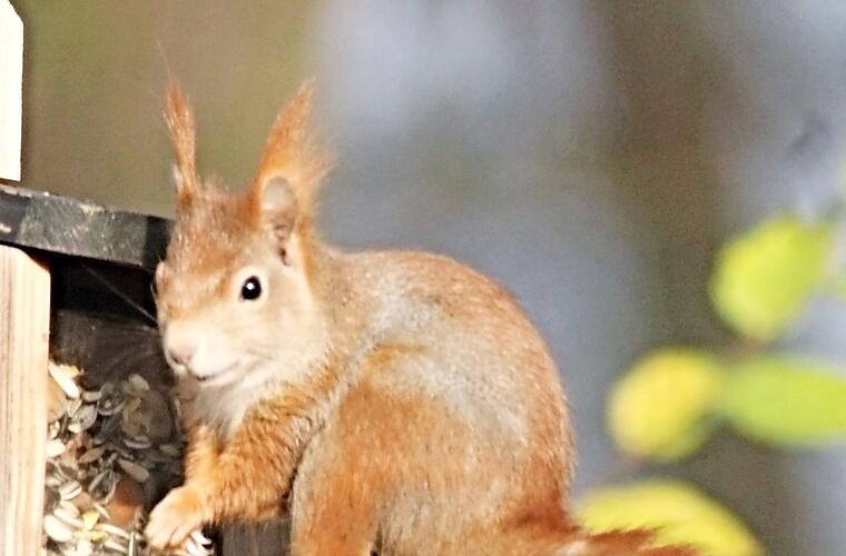 Geschickt versteckt hat unser Mitarbeiter Helmut Will in Unterpreppach diesen kleinen Kerl hier erwischt. Das Eichhörnchen schnappt sich am Futterstand gerade noch ein paar Leckerbissen. Jetzt heißt es nämlich, für den Winter vorsorgen!