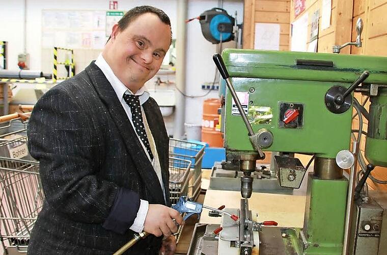 Sven Rink arbeitet in der Werkstatt für Menschen mit Behinderung der Lebenshilfe in Augsfeld. Und er hat dieses Jahr etwas zu feiern. "Sven, feierst du nicht dieses Jahr Jubiläum?", fragt Heike Vöge vom Fachdienst der Werkstatt Haßfurt-Augsfeld. "Ja", sagt Rink stolz und erzählt, wie gerne er hier arbeitet. "Als Schlosser. Ich mag das Stanzen und Bohren", sagt Rink und fügt grinsend hinzu: "Und der Gruppenleiter ist auch nett."