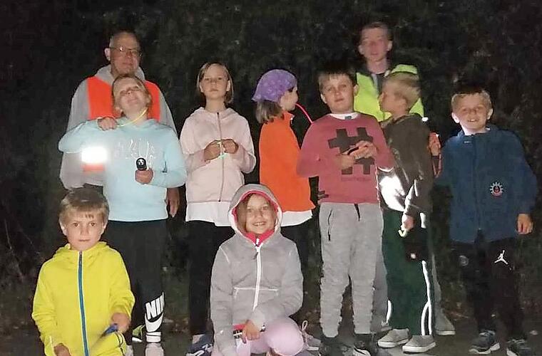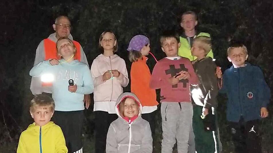 Schließlich machten sich die Nachtwanderer fertig und marschierten mit ihren Betreuern Jan Nußgräber und Wolfgang Pöpperl zur Kieswäsch. Als die Kinder knapp eineinhalb Stunden später zurückkamen, empfing sie ein loderndes Feuer. Gemeinsam ließ man sich die Stockbrote schmecken.