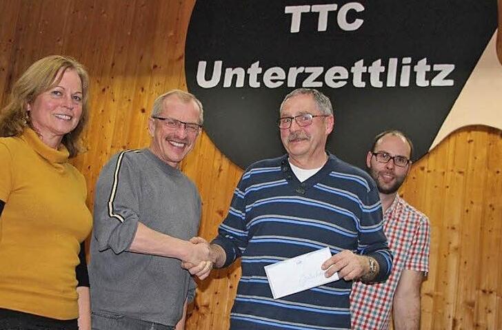 Hier wurde und wird Beispielhaftes geleistet, bestätigte Ortssprecherin Bärbel Köcheler (FW) dem Tischtennis-Club Unterzettlitz bei dessen Jahreshauptversammlung. Josef Spindler - eine tragende Säule des Vereins - wurde für 33 Jahre Jugendarbeit geehrt. Applaus spendeten die Anwesenden, als Kassier Roland Schnapp verkündete, dass man zum Jahreswechsel nach rund 30 Jahren den Bankkredit für den Kauf der Halle getilgt hat.