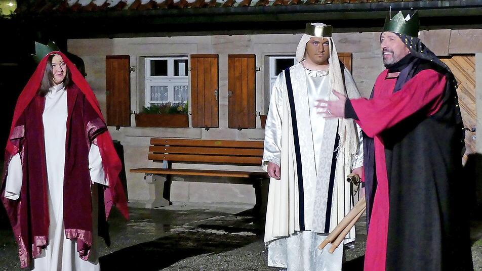Beim Krippenspiel kam den Zuschauern das, was die Propheten damals schon verkündeten, heute auch bekannt vor. "Jeder jammert bluus dauernd, obber kaaner macht irgendwos", sagte einer von ihnen. Die Hirten schimpften, weil ihre Arbeit immer schwerer wird, "während die Römer voll auf unnera Kosten leben und dauernd mehr Steiern wolln." Joseph und seine hochschwangere Verlobte Maria machten sich auf den mühsamen Weg nach Bethlehem, um sich dort registrieren zu lassen.