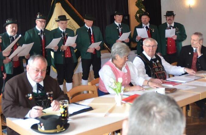 Die Versammlung eröffnete und umrahmte die Gesangsgruppe des Volkstrachtenvereins Zechgemeinschaft Neukenroth unter Leitung von Alexander Fröba, die unter anderem ein Lied aus der Feder ihres langjährigen Leiters und jetzigen Trachtengau-Ehrenmitglieds Gregor Lorsbach vortrug.