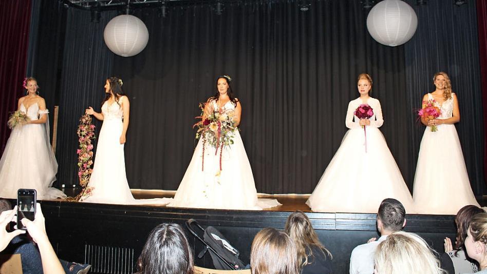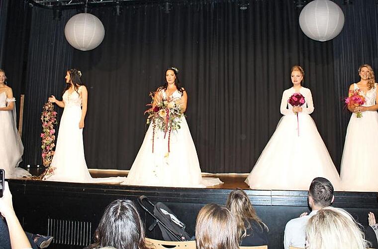 Im Anschluss folgte ein weiteres Highlight, denn das Brautatelier Dornröschen, das erst seit etwa einem Jahr besteht, stellte den Zuschauern die Brautmodenkollektion 2020 vor. Fünf junge Frauen präsentierten die Kleider von klassisch schlicht bis modern und sexy, von Satin und Spitze bis Glitzertüll und Pailletten.