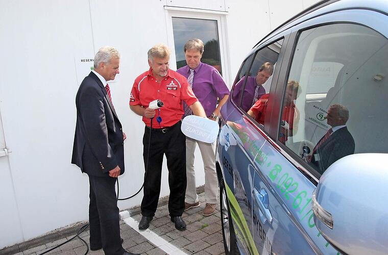 Der Steinbacher Bürgermeister Klaus Löffler und Landrat Oswald Marr informierten sich über diese Neuerung. Autofahren soll Spaß machen und die Umwelt schonen, meinte der Geschäftsführer des Autohauses Fröba, Raimund Fröba. Er ist überzeugt: "Dieser Gedanke wird zunehmen."