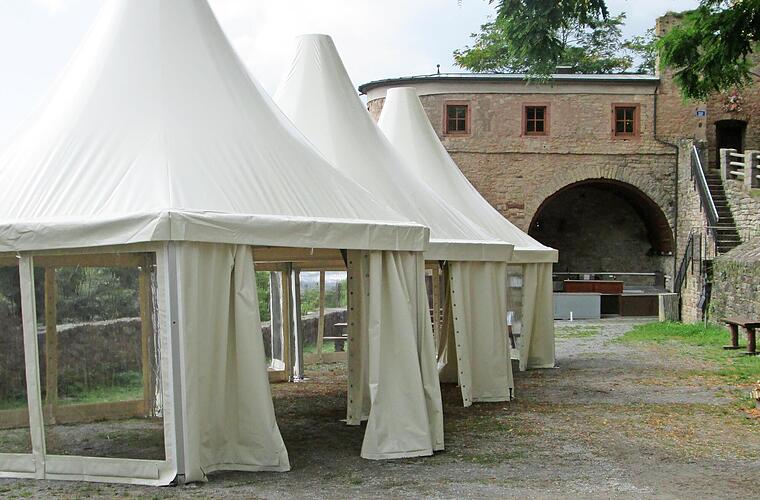Wer sie bisher noch nicht bestaunen konnte, dem fallen die drei Pagodenzelte im äußeren Burghof ins Auge, die durch Förderung des Regional-Budgets der Kommunalen Allianz "Fränkisches Saaletal" ermöglicht wurde und die Schutz vor Sonne, Regen und Wind bieten. Zeltveranstaltungen und Bewirtung sind damit wetterunabhängig. Die "Freunde der Trimburg" waren auch anderweitig in der Zwangspause tätig. So ist eine Webcam am Burgturm installiert, die das Saaletal von Hammelburg bis Bad Kissingen zeigt. Den Weg zur Webcam finden Interessierte über die Web-Seite der Freunde der Trimburg. Die Bewirtung übernehmen die Vereine. Dieses System hat sich gut eingespielt und bietet den Vereinen die Möglichkeit, etwas Geld für die Vereinskasse zu generieren. Drei Bewirtungstermine - am 29. Mai, am 21. Juli und am 31. Oktober ( der Abschlusstag) - sind noch zu vergeben (Rathaus Elfershausen, Tel.: 09704/311 012 oder per E-Mail unter ziegler@elfershausen.de. Terminiert sind der Muttertag auf der Trimburg am 8. Mai, den der Kindergarten Westheim organisiert, das Jazzfest am 26. Juni, die Theatertage vom 8. bis 10. Juli und vom 14. bis zum 19. Juli, das bunte Saalemusicum-Kindermusical am 15. Juli, die abenteuerliche Knappenschule am 17. Juli, das Weinfest am 7. August, das Musik-Theater am 18. September und die Burgbelebung durch die Trimberger Ritterschaft am 25. September. Für alle Mitglieder der Freunde der Trimburg gilt es den 29. Mai vorzumerken. Ab 11 Uhr beginnt die Jahreshauptversammlung mit einem Weißwurstfrühstück. Anmeldung per E-Mail unter freunde@trimburg.com.