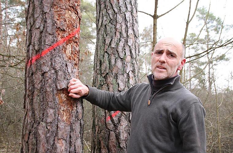 Doppelt tragisch ist das Absterben der Kiefern für den Stadtförster dann, wenn es sich um sogenannte astreine Kiefern handelt. Das sind Bäume, deren Äste auf sechs Meter Höhe in jungen Jahren abgesägt werden. Dadurch entsteht hochwertiges Holz ohne Äste. Dort wurde also Arbeit und somit Geld investiert. Doch jetzt sterben auch diese Bäume weg.