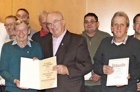 Sebastian Kammerer, Willi Wahl und Rudi Sitte ehrten im Anschluss die Mitglieder für 25, 40, 50 und 60 Jahre, und sie hatten für jeden Geehrten die passenden Worte parat. Als kurzweilige Unterbrechung diente ein Film von einem Ausflug des Vereins vor 28 Jahren, der viel Heiterkeit im Saal auslöste.
