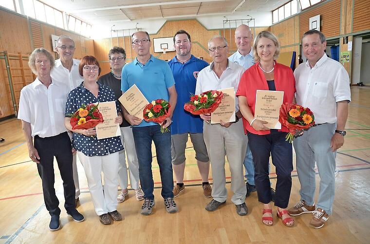 Der BLSV-Kreisvorsitzende Mario Schmid nahm mit Ehrenkreisvorsitzendem Karl H. Fick die hohen Ehrungen vor. Alle vier Geehrten zeichneten sich in ihrem Verein nicht nur teils schon über 30 Jahre als vorbildliche Übungsleiter aus, sondern prägen den Verein seit drei Jahrzehnten.