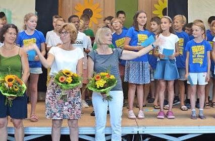 Zusammen mit Ulrike Blum geht Maria Simon von der Mittagsbetreuung nach 21 Jahren in Rente, Regina Scherer von der Musikschule Herzogenaurach geht nach sechs Jahren Arbeit in den ersten Klassen nach Erlangen in die Musikschule und die Leiterin des Hortes, Ulrike Lösch, wird in Cadolzburg eine neue Stelle antreten. red