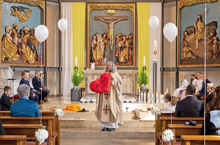 In der St.-Bartholomäus-Kirche in Rothenkirchen empfingen sieben Buben und drei Mädchen zum ersten Mal das Sakrament der heiligen Kommunion. Pater Helmut Haagen schickte dabei die Kinder auf Schatzsuc...