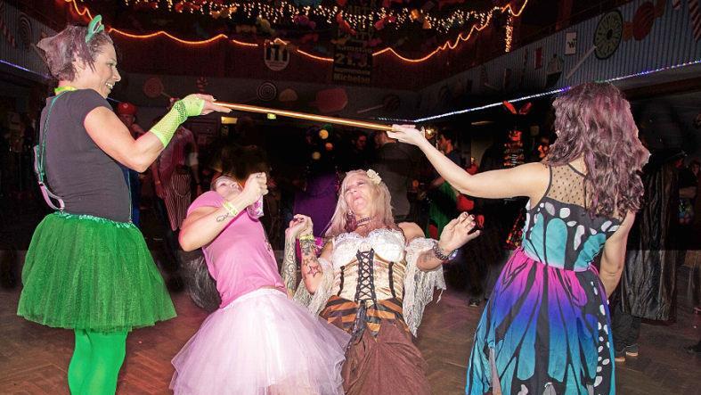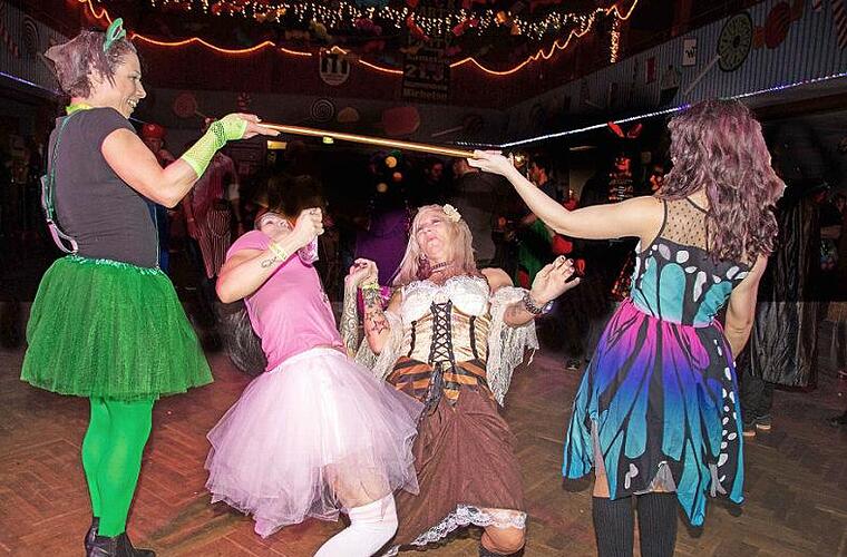 Sie wurden nicht enttäuscht. Dafür sorgte schon DJ Wichwahn mit seinen Partykrachern, die die Kostümierten immer wieder auf die Tanzfläche lockten. Es war eine gelungene Mischung aus aktuellen Hits und eine Reminiszenz an frühere Zeiten. Wer wollte, konnte da die verschiedensten Tanzstile ausprobieren. Die reichten vom Rock and Roll und Twist über Lambada, Macarena bis hin zum Limbo. Ganz spontan entwickelte sich da ein kleiner Wettstreit beim Tanz unter der Stange, die von einigen weniger sportlichen Teilnehmern allerdings kontraproduktiv einfach überstiegen wurde.