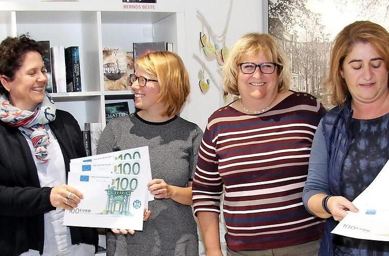 Im Lesecafé bei Büchern, Medien und mehr konnten Retta Müller-Schimmel, Sandra Wüstner und Claudia Belzer sowie Ruthild Schrepfer je 300 Euro an Carina Harberuther von Frauenzentrum und an Alev Ekici vom Partnerschaftsverein übergeben. Die beiden Spendenempfängerinnen, die sich über die Spende freuten, erläuterten, für was die Spende verwendet wird: "Das Frauenzentrum in Erlangen wird sowohl von der Stadt als auch vom Landkreis unterstützt, ist aber auch auf Unterstützung angewiesen", erklärte Carina Harbeuther. Ziel der Arbeit im Frauenzentrum ist es, dass alle Frauen in allen gesellschaftlichen Bereichen ein selbstbestimmtes Leben führen können. So werden unter anderem Verteidigungskurse und Selbstbehauptungskurse ebenso angeboten wie Workshops, kulturelle Veranstaltungen und Filmabende, aber Vorträge zu Gesundheit und Politik.